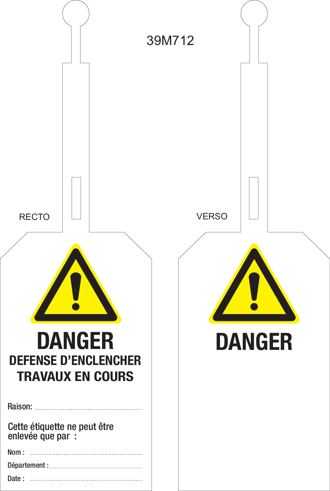 DANGER. DEFENSE D'ENCLENCHER A FERMETURE