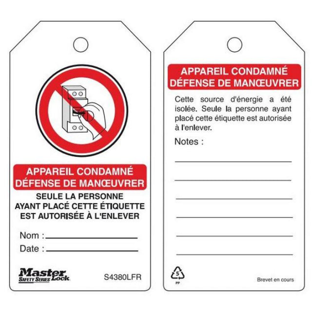 Étiquette de sécurité Guardian Extreme "DÉFENSE DE MANŒUVRER", polypropylène, 76x146mm, emballée par 6.