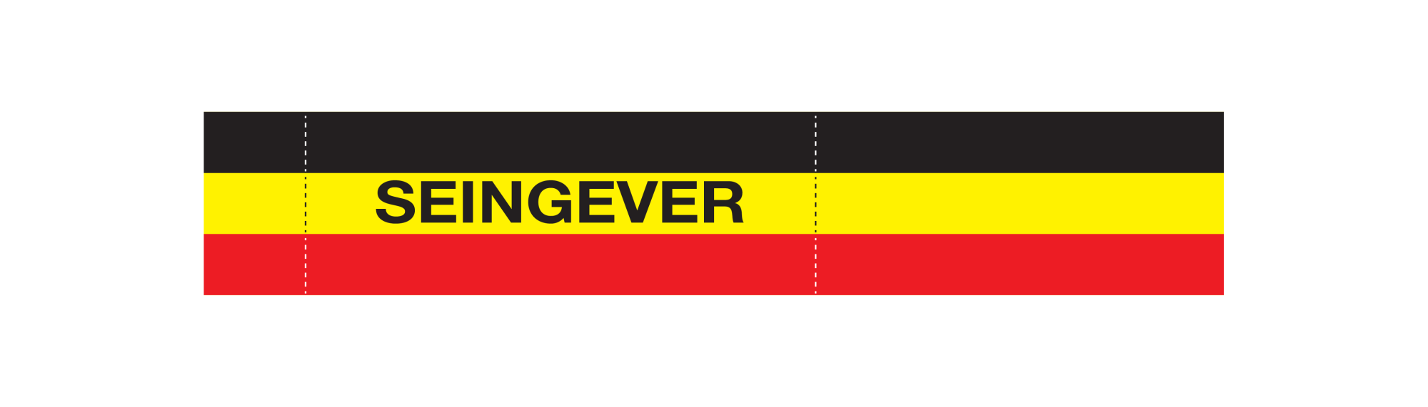 Brassard de signalisation tricolore Belge avec texte "SEINGEVER". Fermeture auto-agrippante velcro. 500x90mm.