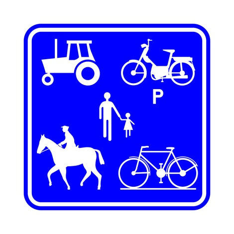 F99c signaux indication: chemin réservé aux véhicules agricoles, aux piétons, cyclistes et cavaliers.