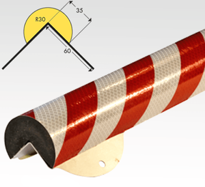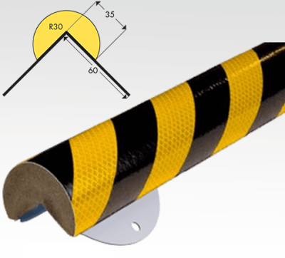 Protection d'angle rétroréfléchissante Knuffi TYPE A+ en mousse polyuréthane autocollante (3N/10 mm).1 mètre. Longueur : 1 mètre. Jaune/noir et rouge/blanc.