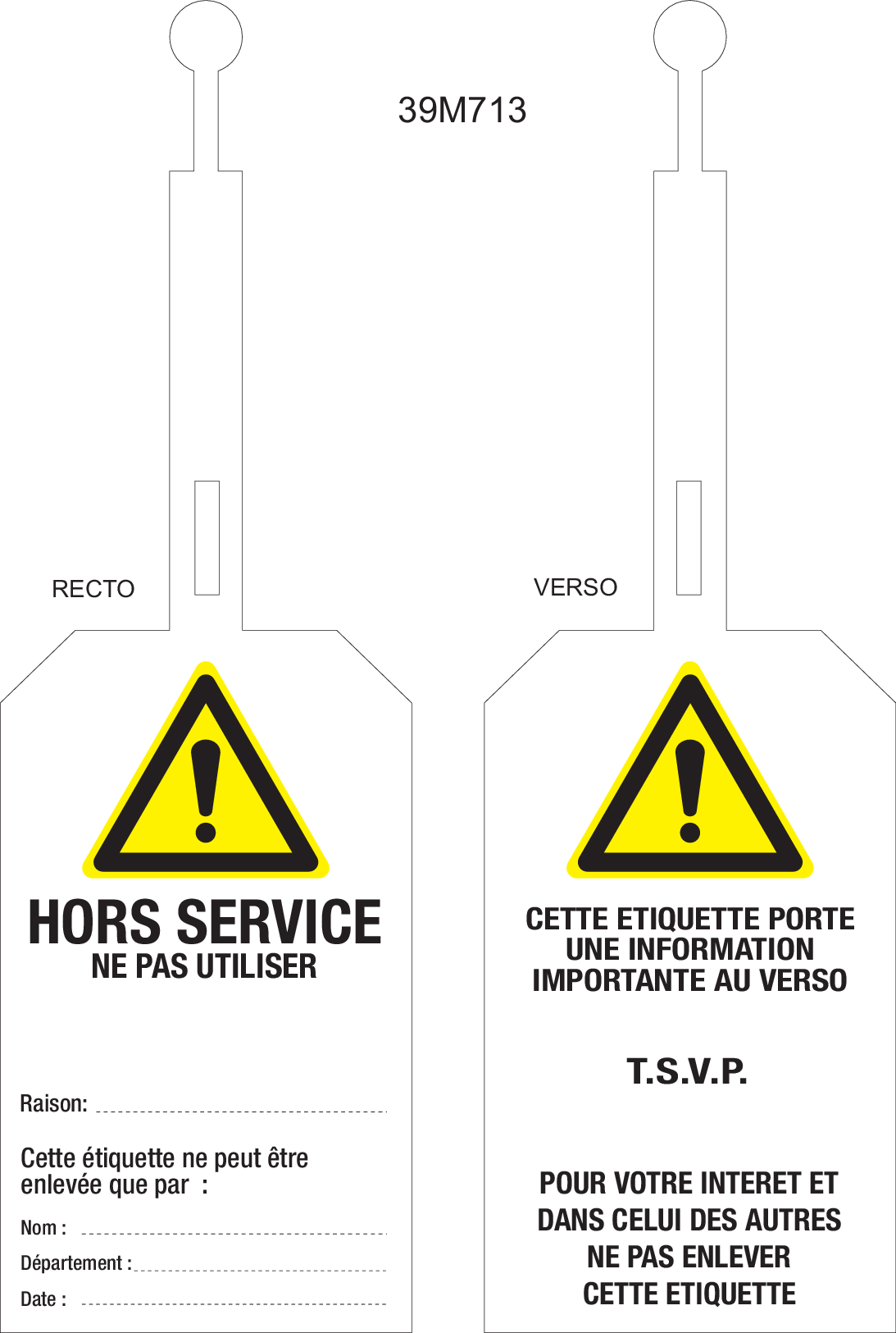 HORS SERVICE. ETIQUETTE A FERMETURE