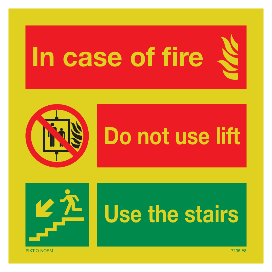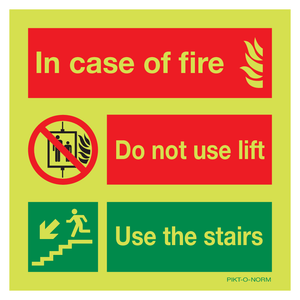 IN CASE OF FIRE, DO NOT USE LIFT. USE...