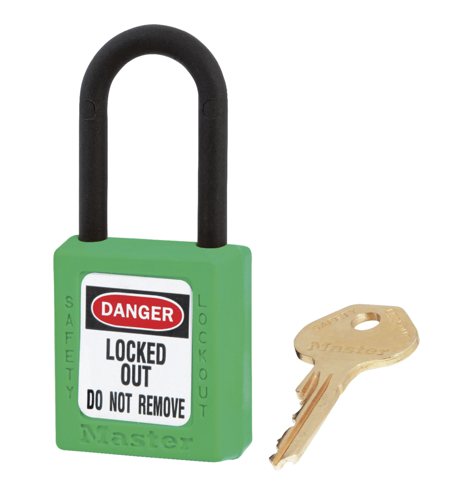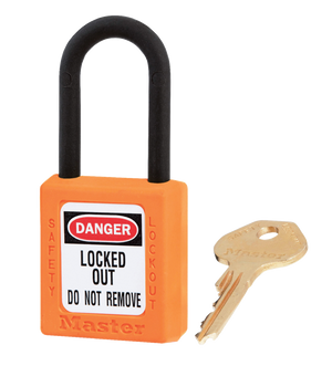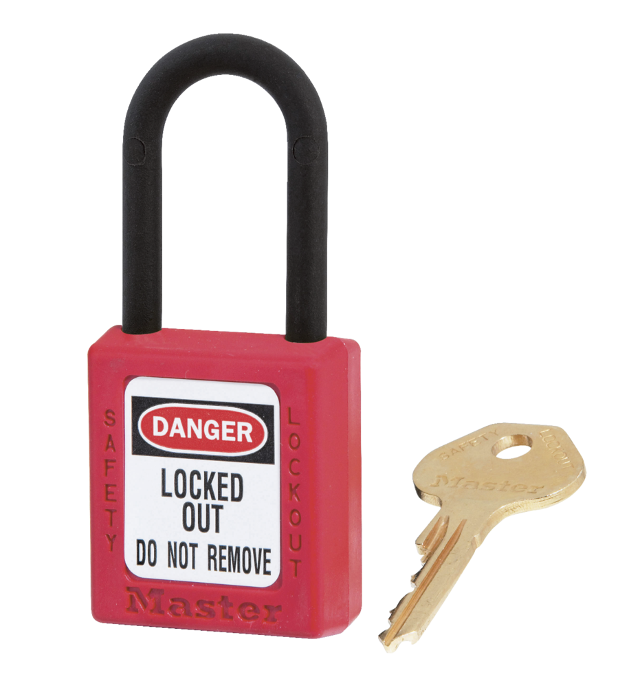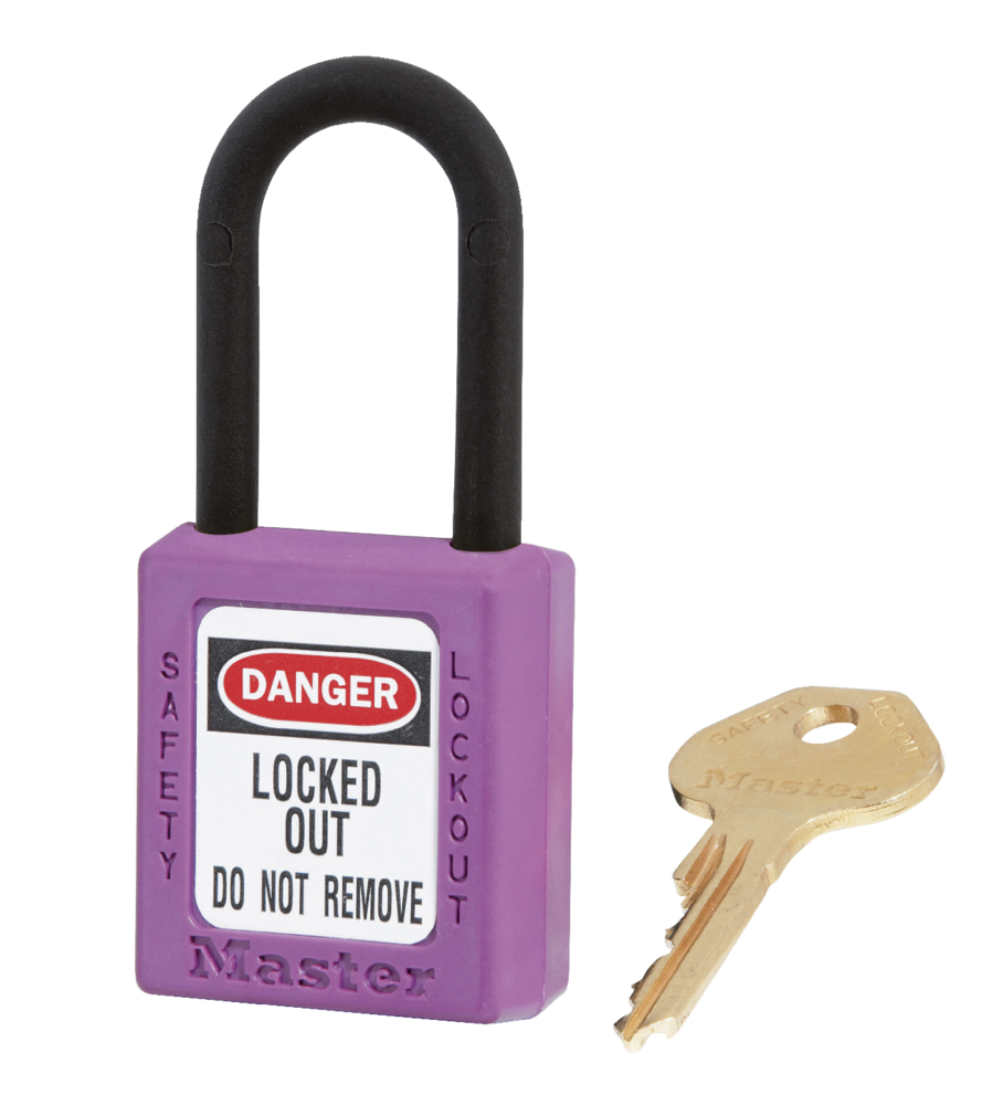 VOOR ELEKTRISCHE TOEPASSINGEN 6-pen cilinder met gereserveerd sleutelprofiel en meer dan 40000 unieke sleutel veiligheidscodes.  De sleutelbeveiliging- eigenschap zorgt ervoor dat het hangslot niet per ongeluk ontgrendeld achtergelaten wordt, Thermoplastic Zenex™ behuizing is bestendig tegen roest, UVstralen, extreme temperaturen (-40°C tot +90°C) en chemische  stoffen.  Ø 6mm Plastic beugel helpt elektrocutie, overspringende vonken en elektrische stroom van beugel naar sleutel te voorkomen.  Bevat 1 sleutel volgens de richtlijn "één werknemer, één hangslot, één sleutel".
