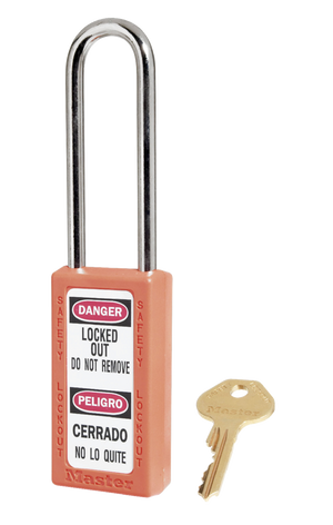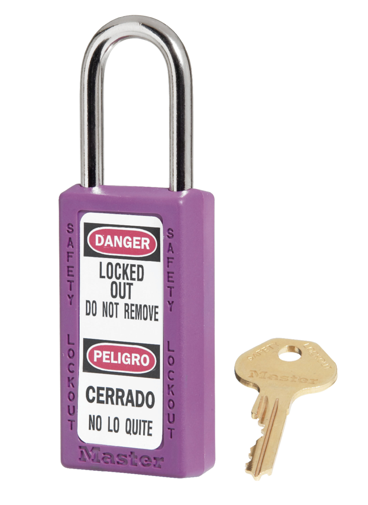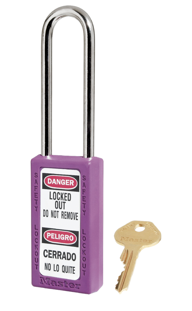 VOOR ALLE LOCKOUT TOEPASSINGEN 6-pen cilinder met gereserveerd sleutelprofiel en meer dan 40.000 unieke sleutel veiligheidscodes. De sleutelbeveiliging- eigenschap zorgt ervoor dat het hangslot niet per ongeluk ontgrendeld achtergelaten wordt, Thermoplastic Zenex behuizing is bestendig tegen roest, UV stralen, extreme temperaturen (-40°C tot +90°C) en chemische  stoffen; 6mm stalen beugel.  Bevat 1 sleutel volgens de richtlijn "één werknemer, één hangslot, één sleutel".