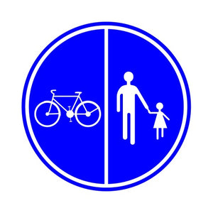 D9a verkeersbord gebod: deel van de openbare weg gereserveerd voor het verkeer van voetgangers, fietsen en tweewielige bromfietsen klasse A.