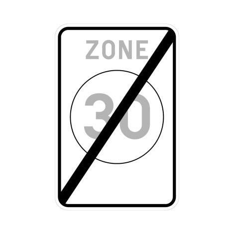 F4b aanwijzingsborden: einde van een zone waar de maximumsnelheid 30 km per uur is.