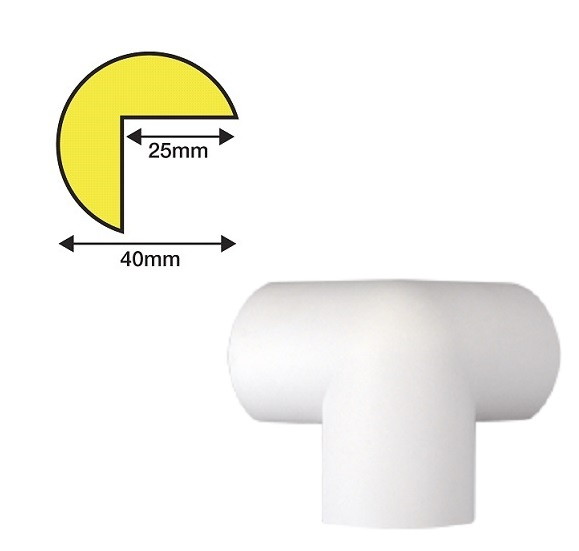 Zelfklevende hoekbeschermers TYPE A geschikt voor Knuffi hoekbeschermingsprofiel TYPE A voor bescherming van 3 zijkanten in polyurethaanschuim. 3-poots ontwerp voor driezijdige aansluiting rond 90 graden hoeken. Betrouwbare stootbescherming voor scherpe hoeken van bijvoorbeeld machines en rekken etc.	Kleur zwart of wit.