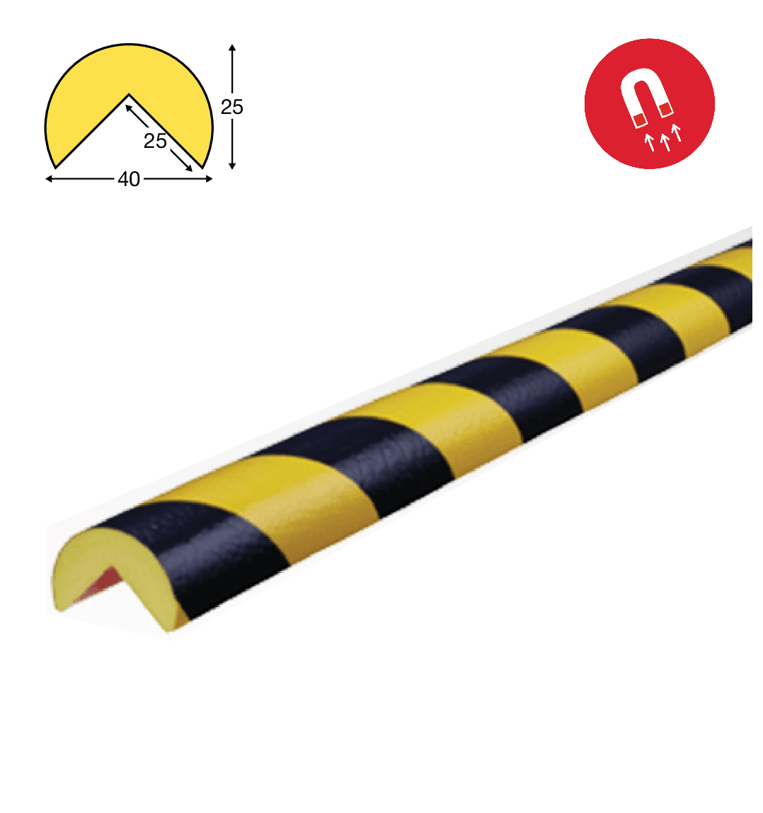 Knuffi magnetische hoekbeschermingen TYPE A uit polyurethaanschuim. Lengte 1meter. Diverse kleuren beschikbaar.
