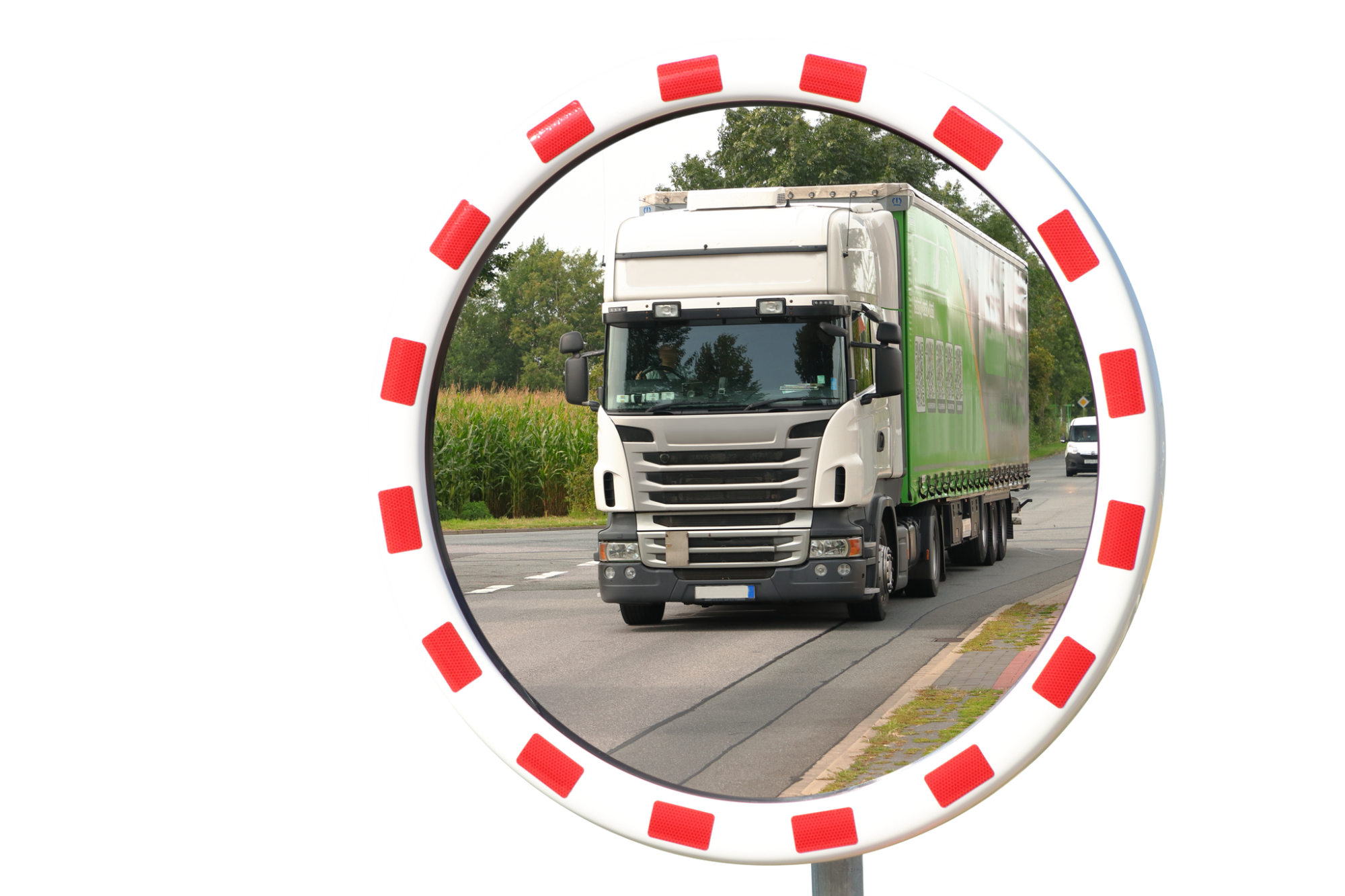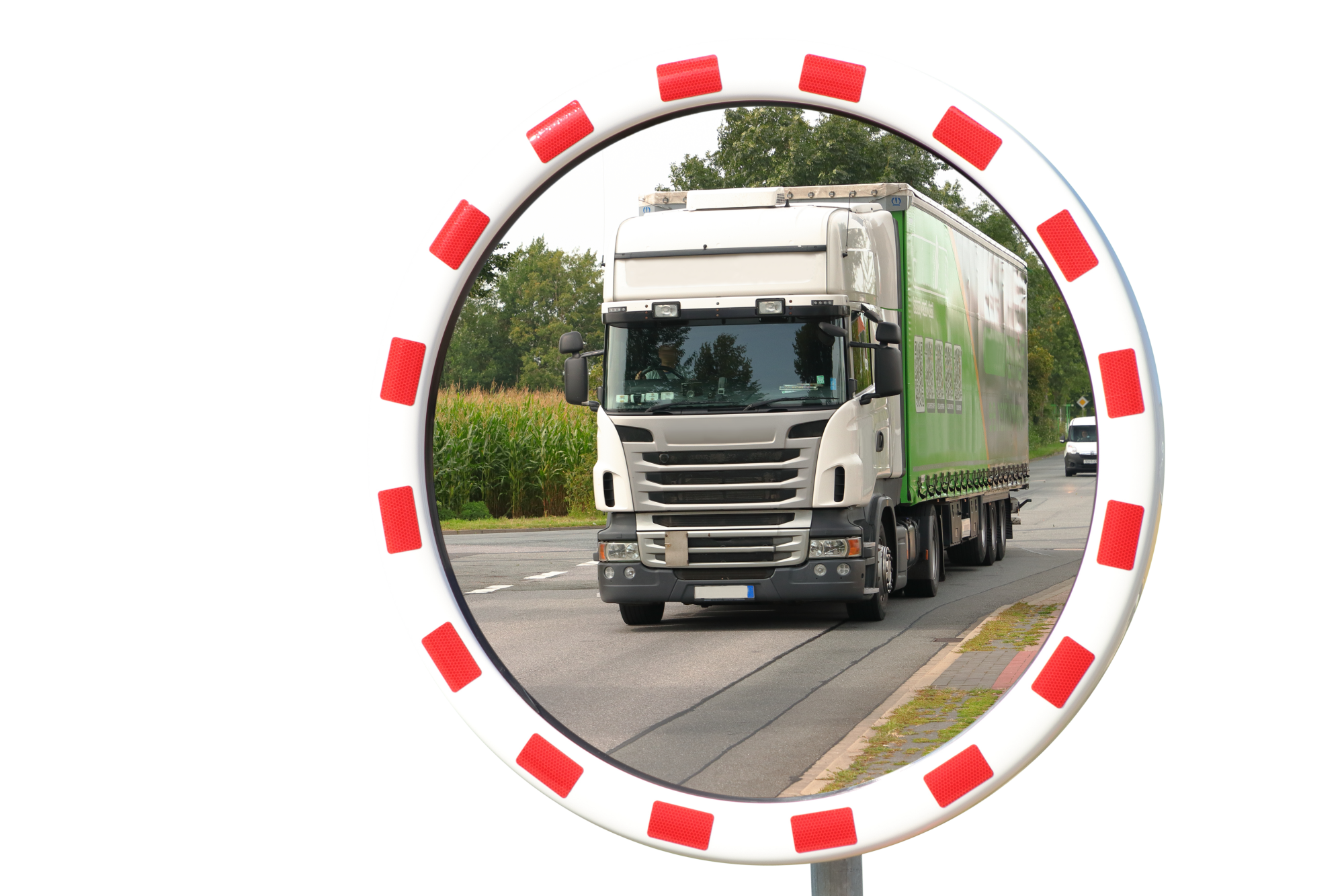 Ronde inox industriespiegels uit helder gepolijst RVS, rood/wit kader met reflecterende rode banden. Voor binnen en buiten gebruik. Inclusief bevestigingsbeugel 48-90mm, geschikt voor montage op muur of paal 76mm. Gebruikerafstand: TMINOX60 0-15m. & TMINOX80 0-25m.
