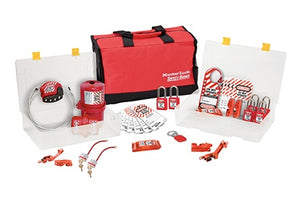 Lockout draagtas voor elektrische toepassingen en gevuld met 6 Zenex 410KA thermoplastische hangsloten, 1x S806, 2x493B, 2x 491B, 1x S3823, 1x S3822, 2x S3821, 3x 420, 3x 428, 1x 487, 1x S2005, 1x 496B en 12x 497A "DO NOT OPERATE" tags.