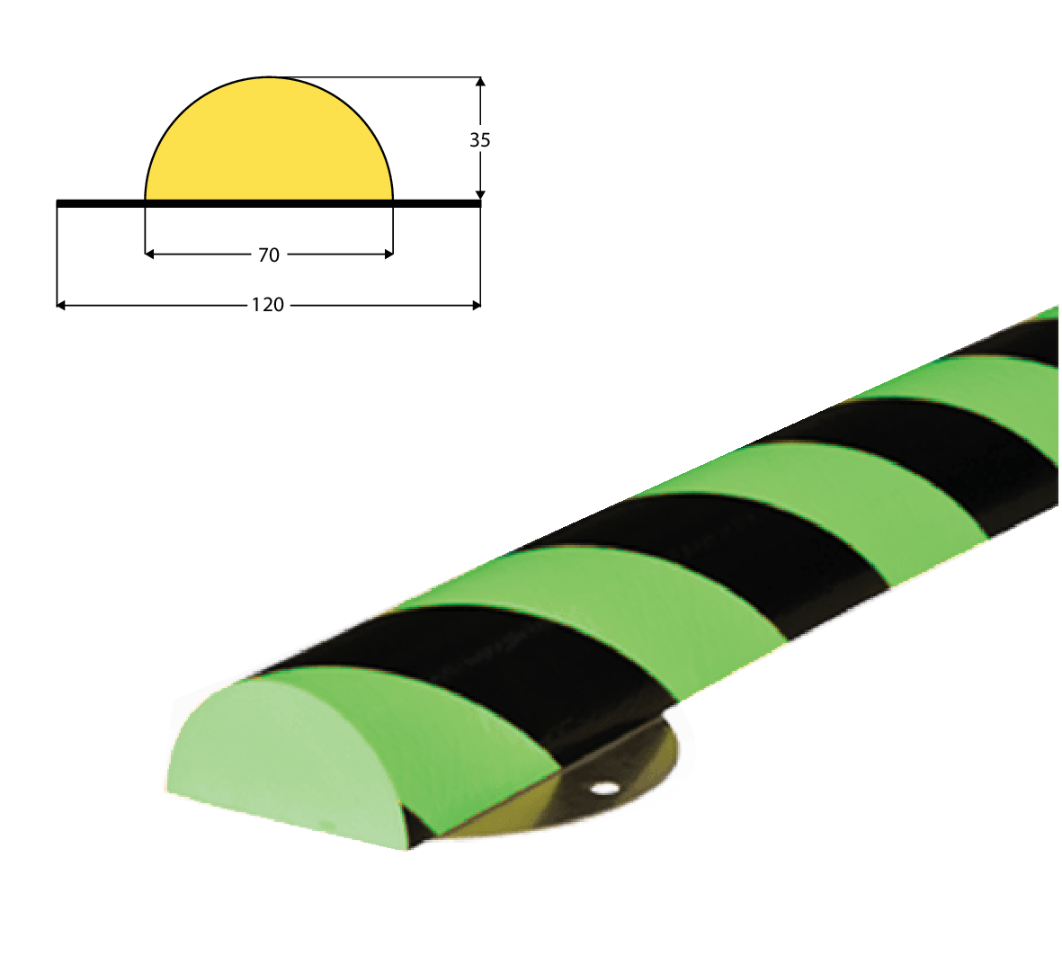 Knuffi oppervlaktebeschermingen TYPE C+ uit polyurethaanschuim, met RVS muurbevestiging. Lengte 0.5 & 1meter. Fluo/zwart en geel/zwart.