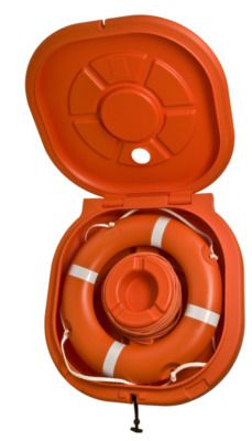 Oranje reddingsboeikast, gesloten model zonder inhoud, 900x900x220mm. Voor boei Ø 730mm.