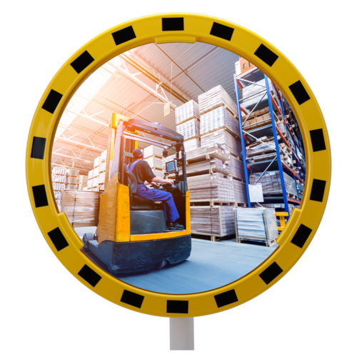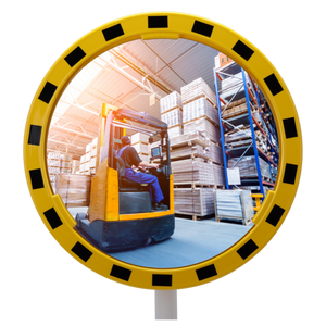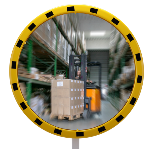 Heldere ronde slagvaste industriële acryl spiegels met geel/zwarte polyesterframe.Inclusief bevestigingsbeugel 48-90mm, Geschikt voor montage op paal 76mm of muur. Gebruikersafstand: EDI60 0-12m & EDI80 0-15m.