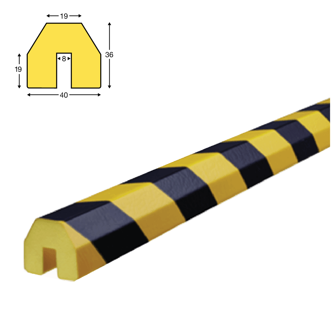Knuffi randbeschermingen TYPE BB polyurethaanschuim zelfklevend. Lengte 1 & 5 meter. Geel/zwart.