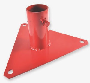De K940 driehoekige, vlakke voet uit rood gelakt staal, voor paal diam. 51mm, beschikt over 3 bevestigingsgaten en een vijs op de zijkant om paal goed vast te zetten. 300x300x300mm.